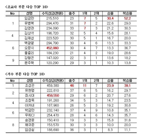 - 조성곤 기수 독보적 1위로 밤의 사나이 등극