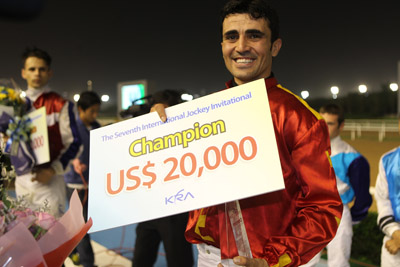 터키 경마의 위상을 드높인 아흐메 기수는 토요 9경주(1900m)에서 ‘사군육진’에 기승해 우승을, 일요 9경주(1900m) YTN배 경주에 ‘환상의물결’에 기승해 8위를 기록하며 24점을 받았다. 2위를 차지한 남아공의 알도 기수는 YTN배 경주에서 ‘탱고스텝’에 기승해 막판 폭발적인 뒷심으로 멋진 역전승을 차지했지만 토요경마에서 꼴찌를 차지해 아깝게 준우승에 머무르게 됐다. 이어 3위를 기록한 박태종 기수는 2위, 6위를 고른 활약을 펼치며 3위를 기록했다.