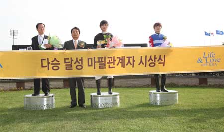 KRA 부산경남경마공원(본부장 조정기)은 ‘11. 9. 25(일) 4경주 종료 후, 관람대 전면 시상대에서 임금만 조교사(47세)의 200승을 비롯하여 조성곤 기수(29세)의 300승, 최시대 기수(31세)의 100승 달성 시상식을 개최하였다. 임금만은 2004년 조교사로 데뷔하여 1,753전 204승, 2착 196회로서 승률 11.6%, 복승률 22.8%을 기록하고 있고 조성곤 기수는 2005년 데뷔, 현재까지 2,302전 305승 2착 294회로서 13.2%의 승률과 26.0%의 복승률, 최시대 기수는 2007년 데뷔한 이후 1,215전 100승 2착 133회로서 8.2%의 승률과 19.2%의 복승률을 기록하고 있다.