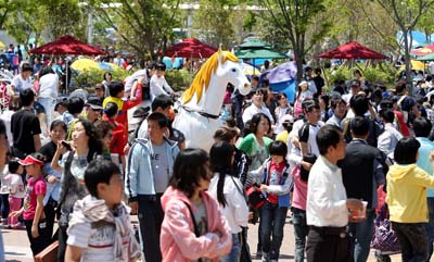 부산경남지역 대표적 가족공원으로 부상한 KRA 부산경남경마공원(본부장 이종대)에 지난주 일요일(4월 1일) 금년 최다인파가 몰렸다. 입장인원 집계 결과 이날 하루에만 13,181명이 들어 2012년 시즌 최고의 방문객이 몰린 것으로 집계되었다. 어린이방문객도 종전 최고기록인 1,476명의 두 배를 훌쩍 넘은 3,601명이었다. 최다인파가 몰린 이날 부경경마공원의 광장은 자전거를 타고 놀고 있는 아이들로 붐볐다. KRA 서비스팀 관계자는 “3월 들어 방문객이 점진적으로 증가추세에 있었는데, 꽃샘추위가 한풀 꺾이면서 금주에 방문객이 몰렸던 것 같다”고 밝혔다. 한편 최다인파가 몰리면서 경마공원은 주차난으로 또 한 번 홍역을 치렀다. 이러타할 대중교통이 없어 방문객 대다수가 자가용을 이용해 방문한 결과 무료주차대수를 최대 6,000대 정도 확보하고 있지만 주차공간이 부족해 고객들이 불편을 겪었다. 경마공원측은 “주차대수를 늘리고, 셔틀버스를 운행하는 자구책만으로는 늘어나는 방문객을 감당하기 힘들다”면서 “부산시와 경남도차원의 대중교통 확충노력이 절실하다”고 하소연했다.