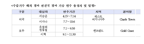 - KRA경마교육원 ‘경마 선진국 경마 연수’ .. 서승운 등 수습기수 5명 3개월간 해외 경마연수