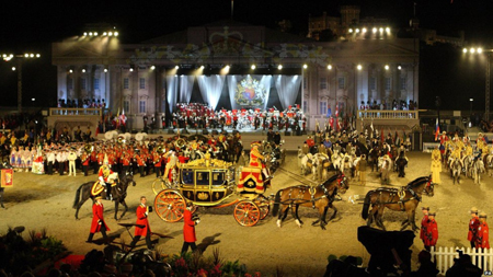 예복을 갖춰 입은 오만의 기사들이 유향연기가 가득한 무대를 뚫고 100마리의 마필들을 타며 용맹하게 무대를 휘저었다. 공연의 사회자는 “오만왕국은 역사속으로 사라졌지만 그 기상은 세계 왕실에 전해지고 있다”라고 오만왕국의 역사성을 설명했다. 그밖에도 뉴사우스웰즈의 기마경찰대가 참여해 희미한 중세 윈저성의 형상을 배경으로 말과 왈츠에 맞추어 행진하고 엘리자베스 2세가 아끼는 경주마가 모형 경주로 무대에서 자태를 뽐내었다.