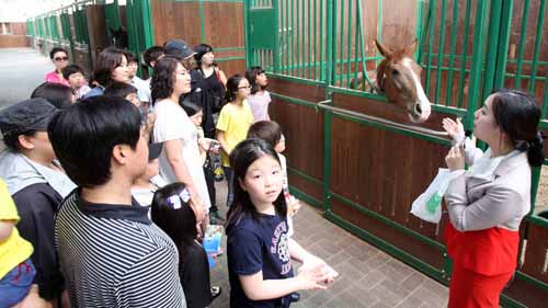 일반 관광상품과 다른 점이 있다면 전 코스의 이용료가 ‘무료’라는 점. 경마공원 중문입구 우측에 위치한 견학프로그램 사무실에서 홍보영상을 관람을 시작으로 → 승용마하우스 → 말 동물병원 → 도핑검사소 → 말수영장 → 방송실 → 순위판정실 → 초보고객안내소 순으로 돌아보는 견학프로그램은 기존 체험놀이시설을 몇 차례 둘러본 고객들에게 단연 인기 만점이다.