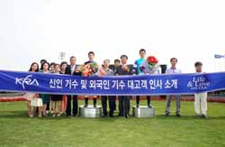 부산경남경마공원에 데뷔한 후지이 기수와 김현중기수가 6.22(금)에 나란히 부산경남경마공원에서 경마고객 소개 행사를 가졌다. 후지이 기수는 일본인으로는 드물게 호주경마교육학교에서 기수 면허를 취득, 2001년 호주경마에 정식 데뷔 통산 3421전 280승을 거두고 2007년도에는 싱가폴에서도 활약한 바 있는 중견기수이며, 김현중 기수는 한국마사고를 졸업하고 지난 5월 기수면허를 취득한 신인 기수다. 한편 김현중 기수는 이날 6경주에 ‘쇼우타임’(한, 암, 3세, 19조 김영관 조교사 소속)에 첫 기승하여 3위로 입상하는 기염을 터뜨려 이날 행사에 참석한 가족들을 들뜨게 했다. 후지이기수도 이번주 금요경마일인 6월 29일(금)부터 적응훈련을 마치고 부경경마공원에서의 첫 기승이 예정되어있다.
