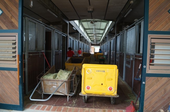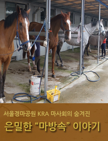 항상 경마장에서 스피드를 내며 경주 말들의 멋진 모습만 보셨다면 마방 속 이야기에서는,