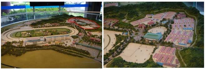 (과천 경마 공원 외부 전체 사진) (과천 경마공원 외부 중 마방의 확대사진)