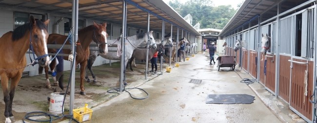 말들은 마방에서 충분한 휴식과 관리를 받으며 다음 경기를 준비합니다.
