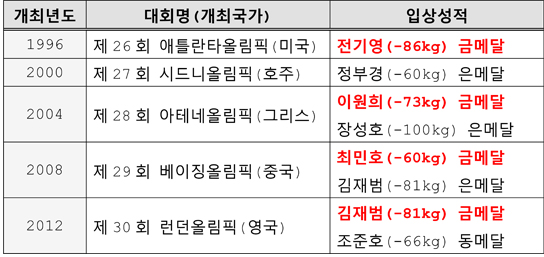 ‘94년 유도단 창단 이후 올림픽(런던올림픽 포함)금메달 4개, 은메달 3개, 동메달 1개 획득