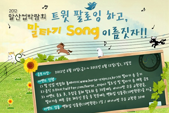 - 트위터 통해 ‘말 타기 캠페인 송’ 곡명 짓기 이벤트 진행… 다양한 경품 증정