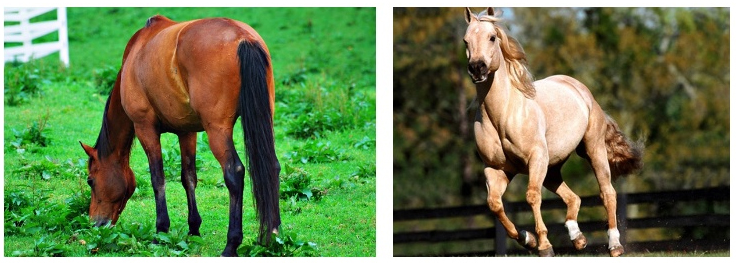 기본적인 말은 밤색, 갈색, 흑갈색, 검은색, 흰색 등 다섯 가지로 나뉘게 됩니다.