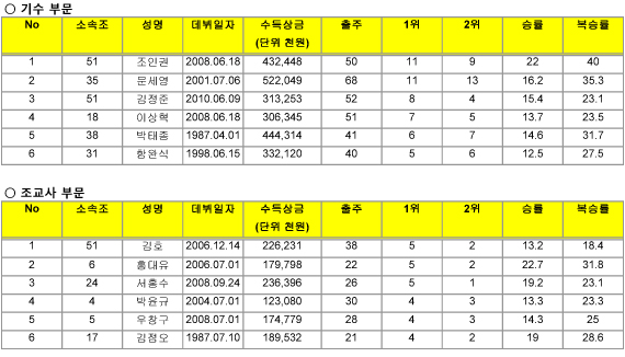 ▲ 조교사부문 - 김호, 홍대유 등 40대 사령탑 돌풍 무섭다.