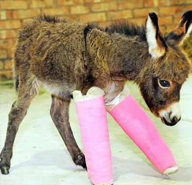 핫 핑크로 깁스한 아기 당나귀... “너무 귀여워”