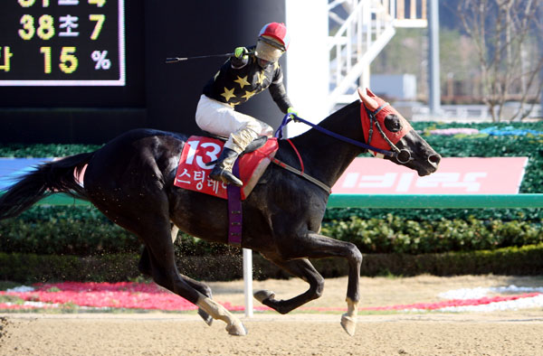 ‘스팅레이’의 추진이 시작함과 동시에 앞서 달리던 ‘할리’와 ‘아멜스아톰’, ‘흑룡비상’의 발걸음이 무뎌지기 시작했다. 순식간에 ‘스팅레이’로 선두가 바뀌면서 경주는 새로운 양상을 보이기 시작했다. 경주로 외곽에서 뒤늦은 추입작전을 펼치던 홀랜드 기수의 ‘라온보스’가 날카로운 추입력을 보이면서 단숨에 2위까지 치고 올라왔던 것. ‘라온보스’의 기세가 매섭기는 했지만 선두까지 따라잡기엔 역부족이었다. 이미 탄력이 붙어버린 ‘스팅레이’는 결승선 전방 약 100미터 지점부터는 승리를 확신한 듯 가벼운 채찍질 외엔 별다른 추진조차 시도하지 않는 낙승을 거두었다. 2위를 차지한 홀랜드 기수의 ‘라온보스’와의 도착차이는 약 4마신이었다. 3위는 박금만 기수의 ‘판타스틱재즈’가 차지했다.
