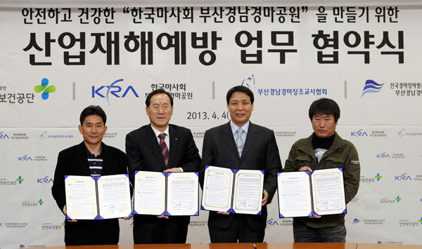 협약식에 참석한 부산경남경마공원 이종대 본부장은 인사말을 통해 “경마공원의 산업재해 발생률은 전국 최고수준이다”라면서 “단지 산재 발생률이 높은 기관을 관리하는 차원이 아닌 협력체계를 통해 산재예방을 줄여보고자 하는 한국산업안전보건공단의 노력에 감사드린다”고 말했다. 한국산업안전보건공단 부산지역본부 심재동 본부장은 “살아있는 경주마를 다뤄야하는 직업적 특성상 산재발생률이 높은 편이지만 저희 공단의 집약되어있는 기술력과 노하우를 공유해 재해 없는 사업장으로 거듭날 수 있도록 최선을 다해 돕겠다”고 밝혔다.
