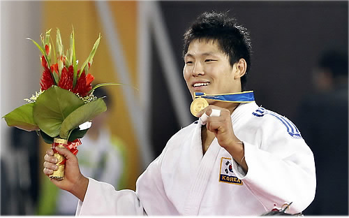 같은 날 오후 여섯 시, 유도에서도 금메달 소식이 들려왔다. KRA 유도단의 스타선수 김재범(25)이 광저우 화궁체육관에서 치러진 대회 남자 81㎏ 이하급 결승에서 쇼키르 무니노프(우즈베키스탄)를 경기 종료 2분 15초를 남기고 안다리걸기 한판승로 제압해 우승했다. 지난 9월 세계선수권대회 우승에 이은 연승행진으로 이로써 김재범은 ‘만년 2인자’라는 딱지를 확실하게 뗐다.