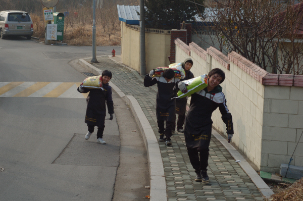 이날 행사에는 기수 40여명이 참석하여 10가구에 연탄 3,000장과 쌀을 전달했습니다.