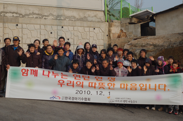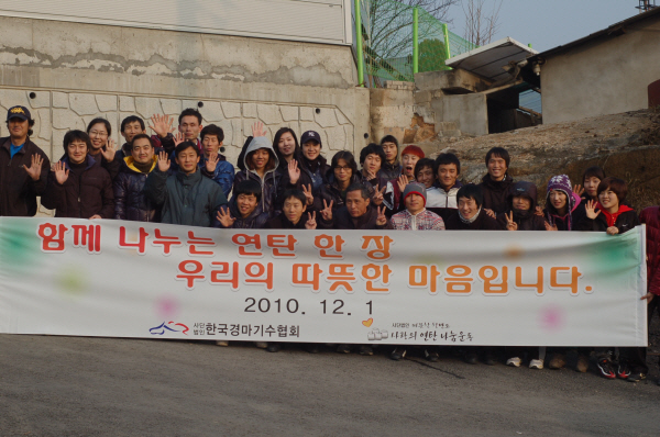 사)한국경마기수협회는 ‘(사)따뜻한 한반도 사랑의 연탄 나눔 운동’과 공동으로 '10.12. 1(수) 에